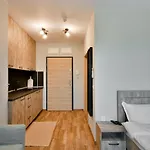 Studio With Pool Apartment oferă facilități de confort, cum ar fi facilități de călcat, instalații de călcat și climatizare, precum și opțiuni de divertisment, precum televiziune prin satelit. Este 1 baie cu o toaletă separată și dușuri, precum și un uscător de păr și prosoape de baie.